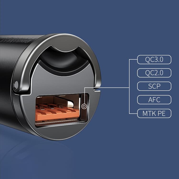 Автомобильная зарядка Baseus Tiny Star Mini Quick Charge 30W поможет вам быстро подзарядить гаджет в машине, благодаря поддержке технологии Quick Charge 3.0. Зарядное устройство выполнено в алюминиевом корпусе и имеет крошечные размеры: полностью прячется в гнезде прикуривателя. Сверху зарядки сделана небольшая ручка, за которую ее можно легко вытащить из гнезда. Адаптер совместим практически в любым устройством, для зарядки которого используется USB кабель.