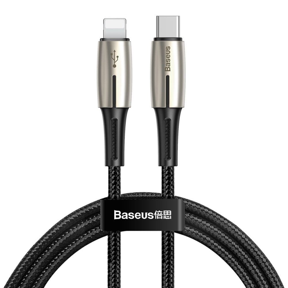 Кабель USB Type-C - Lightning 1.3м Baseus Waterdrop PD 18W стильный и надежный провод, предназначенный для зарядки современных устройств с разъемом Lightning от адаптеров, имеющих выход USB Type-C, а так же для передачи данных между устройствами с данными разъемами. Провод поддерживает быструю зарядку Quick Charge 3.0, Power Delivery 18W (при условии поддержки сетевым адаптером), а так же синхронную передачу данных. Плотная нейлоновая оплетка, алюминиевые коннекторы, усиленная защита в месте стыка провода и коннектора гарантируют износостойкость и долговечность кабеля. Встроенная интеллектуальная защита обеспечит безопасную зарядку вашего гаджета, подстраивая необходимый уровень тока и отключая его подачу при полной зарядке.