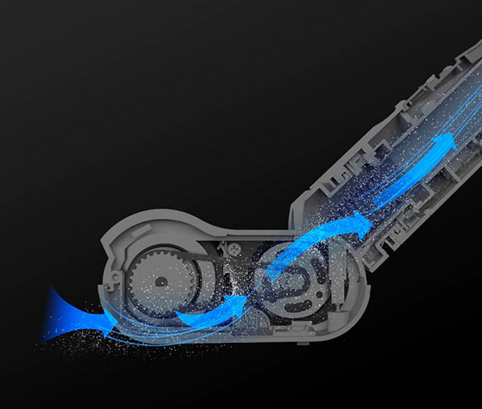Прежде чем пыль и грязь попадут в пылесборную камеру объемом 0,5 л, они проходят через пятиступенчатый фильтр, который был оптимизирован по сравнению с предшественником.