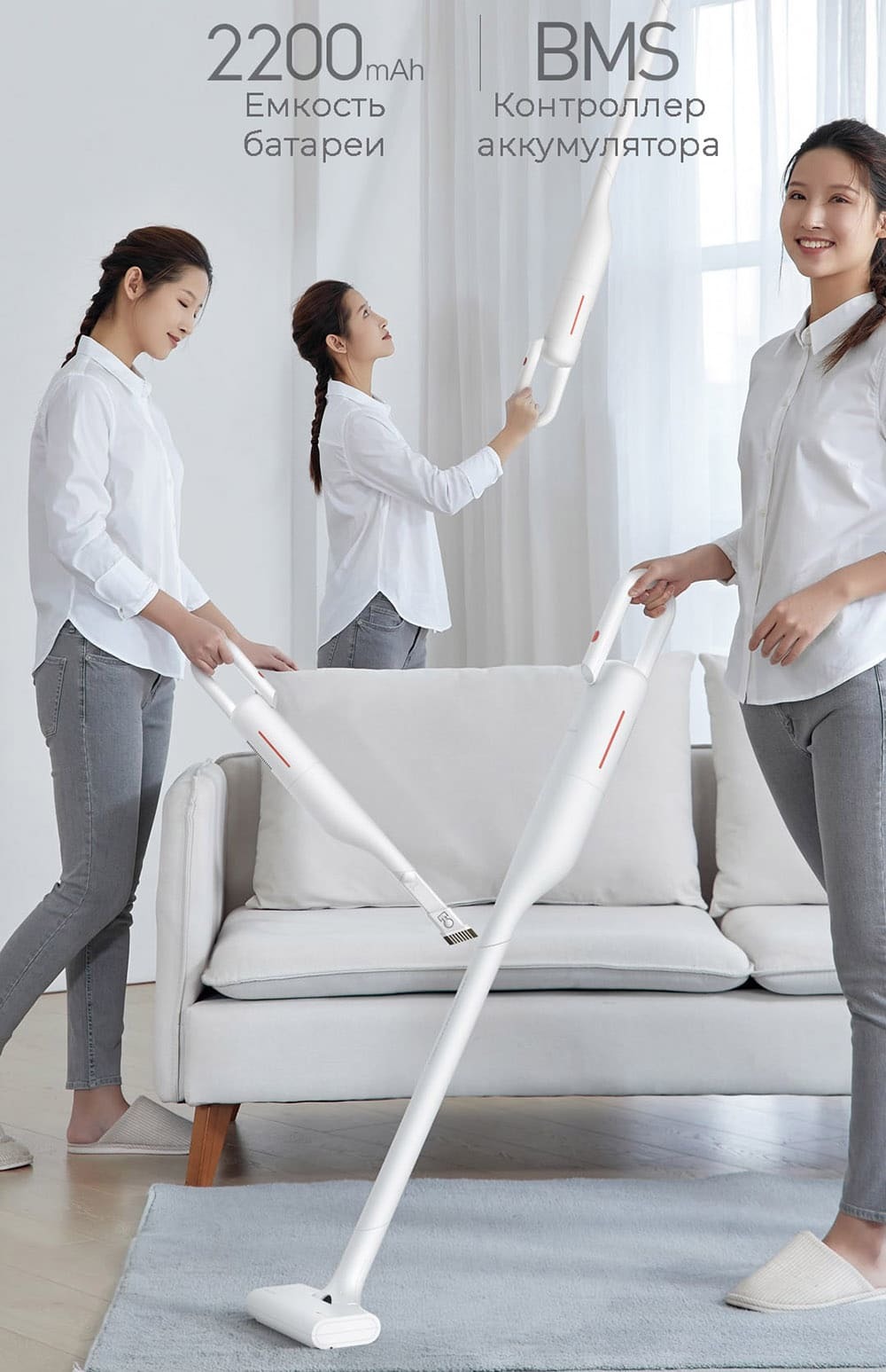 Эргономичная конструкция сверхлегкого пылесоса Deerma отлично подойдет для тщательной уборки даже в сложных условиях. Благодаря грамотному расположению центра тяжести он не утомляет руки даже при очистке потолков и верхушек мебели.