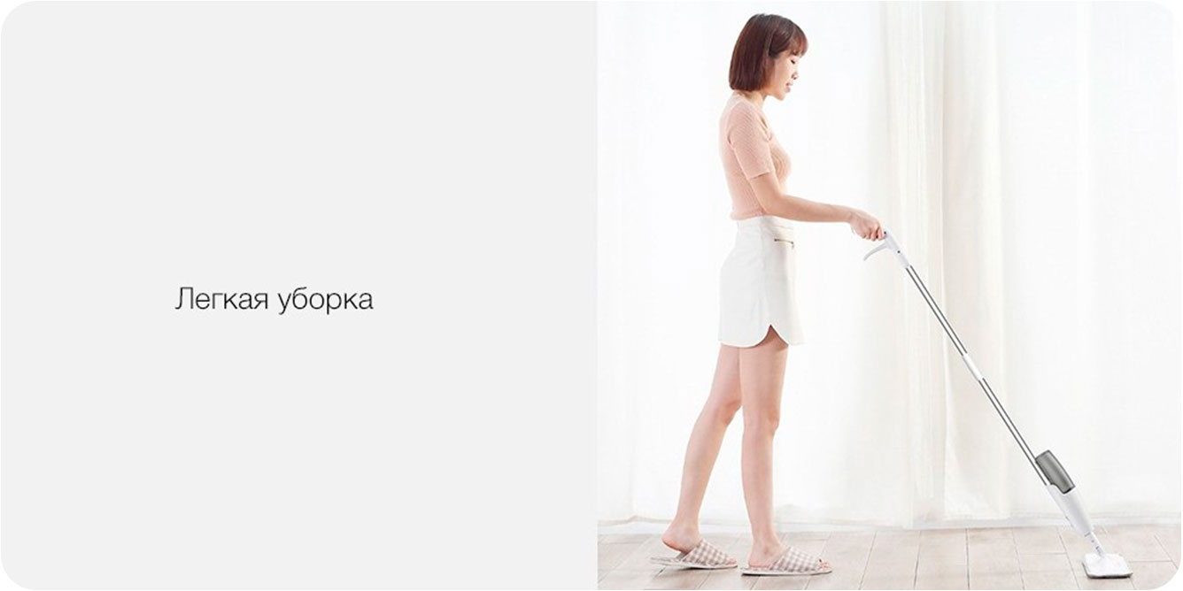 Мы позаботились о том, чтобы швабра была удобна людям разного роста. Ручка длиной 1.2 м позволяет детям и девушкам низкого роста помыть стены и потолки, а высоким обладателям швабры не придется нагибаться, чтобы протереть пол под столом. Со шваброй Xiaomi Deerma Water Spray Mop в квартире не останется загрязненных мест.